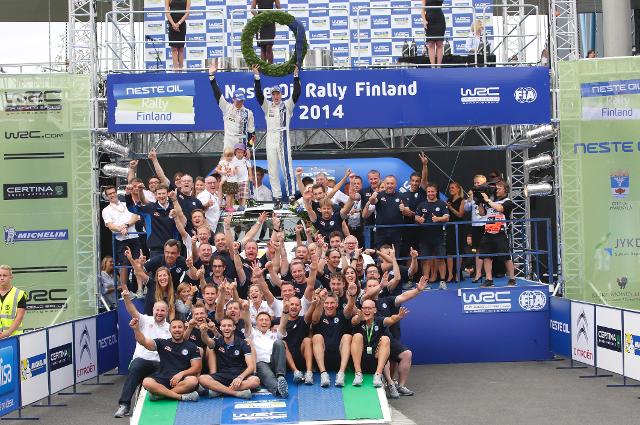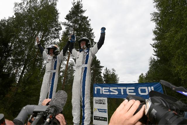 Latvala was 3,7 seconds lead when starting the final stage, Ruuhimäki that was driven for second time. Ogier took 0,1 seconds better time there but Latvala and Anttila gained their second victory of the Neste Oil Rally Finland which they aired wildly in the finish.