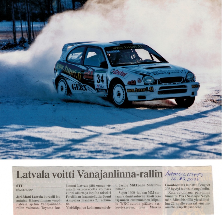 It was great to return to WRC for a long time. First three stages were excellent, except on 2nd stage I braked little too much. As we arrived to service hault we were leading. There was only small gab between us and Kosti Katajamäki and Jouni Ampuja. On stage 4 we suffered from snow dust, because weather was calm. That´s why we tried to tape the lights, but it didn´t help at all. After SS5 there was 16 second deficit to Jouni Ampuja, who set a benchmark on that stage. I thought already that we are going to loose all possibilites to victory. I decided anyway to go flat out and give everything I had. A surprise waited us in the finish. Jouni Ampuja had glid off the road and lost lots of time, so we were the winners. Victory felt enormously good.