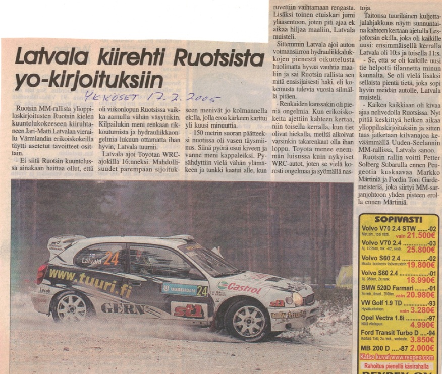 Sunnuntaina oli luvassa kivoja pätkiä ja onnistuin ajamaan hyviä aikoja ja olin peräti uudella erikoiskokeella kymmeneksi nopein. Sunnuntaina autossa oli pieni hydrauliikkavuoto, joka hieman hidasti menoa, mutta ei merkittävästi. Rallin kuudestoista ja maalissa ihan tyytyväinen.